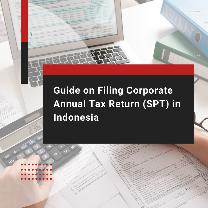 Home Blog Guide on Filing Corporate Annual Tax Return (SPT) in Indonesia Accounting | Tax Reporting Guide on Filing Corporate Annual Tax Return (SPT) in Indonesia InCorp Editorial Team 4 June 2025 6 minutes reading time Table of Contents What is Corporate Tax? The Importance of Corporate Tax Reporting Understanding Corporate Tax in Indonesia How to File Annual Tax Return in Indonesia Corporate Annual Tax Return, or SPT (Surat Pemberitahuan Tahunan), is a vital document that companies in Indonesia must file to report their annual tax obligations to the government. The SPT allows companies to accurately declare their taxable income, deductions, and other pertinent financial information to the tax authorities. This article aims to emphasize the significance of corporate tax reporting and provide guidance on how to report corporate annual tax returns (SPT) in Indonesia. What is Corporate Tax? Corporate tax is a type of tax that is imposed on the profits earned by a company. The company’s taxable income is computed by deducting COGS, G&A, marketing expenses, and other costs from the revenue earned, which is used to determine the tax amount payable. The corporate tax rate can differ considerably depending on the country, and some countries are known for having lower tax rates than others, which has led to them being labeled as tax havens. Corporations may also use various methods such as deductions, subsidies, and tax loopholes to reduce their tax obligations. The effective tax rate, or the actual amount of tax paid by a corporation, is generally lower than the initial statutory rate declared before applying any deductions, resulting in this outcome. Read more: How to Determine Personal and Corporate Income Tax Indonesia The Importance of Corporate Tax Reporting The corporate income tax is crucial to our economic and political systems. It requires corporations to pay taxes on their profits, generating significant revenue for governments to fund public services and infrastructure. However, the importance of the corporate income tax goes far beyond simply generating revenue. Advocates for corporate income tax argue that it is an essential tool for promoting tax fairness, reducing income inequality, encouraging responsible corporate behavior, and holding corporations accountable for their actions. Governments can utilize the substantial revenue generated by corporate income tax to finance public services and infrastructure projects. The corporate income tax promotes tax fairness by requiring corporations to pay their fair share, reducing the burden on individuals and small businesses. Developing countries depend on corporate income tax to fund their development programs, improve social services, and reduce poverty. The corporate income tax creates a level playing field for businesses, reducing unfair competition and promoting innovation. The corporate income tax is an essential aspect of promoting democracy and ensuring that government policies reflect the interests and needs of citizens rather than just powerful corporations. Understanding Corporate Tax in Indonesia The Indonesian government imposes several taxes on corporate income. These taxes are levied on a company’s taxable income, which is calculated based on the company’s revenue minus the cost of goods sold, general and administrative expenses, selling and marketing expenses, research and development expenses, depreciation, and other operating costs. There are different types of taxes on corporate income in Indonesia, the rates at which they are levied, and the rules that apply to their payment and reporting. The following part will explain further on each type: Taxes on a company’s taxable income are imposed by considering its revenue minus operating costs, such as the cost of goods sold, general and administrative expenses, selling and marketing expenses, research and development expenses, depreciation, and other expenses. Indonesia imposes various taxes on corporate income, each with different rates, payments, and reporting regulations. The subsequent section will elaborate on each of these types. Corporate Income Tax A company’s taxable income is subject to corporate income tax. Taxable income is calculated based on the company’s revenue minus various expenses. Indonesia’s corporate income tax rate is 22%, although specific industries may be subject to a different rate. Withholding Tax Companies may be subject to withholding tax on payments such as interest, dividends, royalties, and services rendered. Value-Added Tax (VAT) VAT is levied on the sales of goods and services. Companies must register and report their VAT obligations to the tax authorities. Land and Building Tax Land and building tax is imposed annually on owners or users of land and buildings located in Indonesia. The tax rate varies depending on the location and value of the property. Transfer Tax Transfer tax may be imposed on transferring land, buildings, and other assets such as vehicles and shares. Stamp Duty Stamp duty is imposed on certain legal documents, such as contracts and agreements. The rate varies depending on the type of document and its value. Luxury Goods Sales Tax Luxury goods sales tax is imposed on the sales of certain luxury goods, such as yachts, airplanes, and high-end cars. The tax rate varies depending on the type and value of the goods. Excise Tax Excise tax is imposed on the sales of certain goods, such as tobacco products, alcoholic beverages, and vehicles. The tax rate varies depending on the type of goods. Customs Duty Customs duty is imposed on the import and export of goods. The rate varies depending on the type and value of the goods. Companies operating in Indonesia must carefully comply with the rules and regulations surrounding these taxes to avoid any penalties or fines. How to File Annual Tax Return in Indonesia If you run a business in Indonesia, it’s essential to understand how to file an annual tax return. Filing 