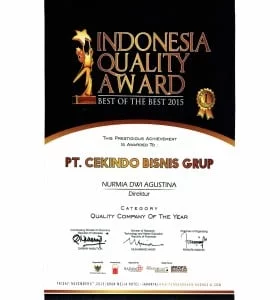 Indonesia Quality Award Kami memperoleh Penghargaan Indonesia Quality Award Cekindo Business International (sebelumnya ‘Cekindo Bisnis Grup’) sebagai perusahaan konsultasi bisnis terkemuka di bidang Market Entry dan Layanan Korporat di Indonesia sukses meraih penghargaan Indonesia Quality Award dan memperoleh penghargaan di kategori Best of The Best 2015 pada November 2015. Terima kasih atas segala dukungan Anda! Anda bisa melihat video singkat di malam penghargaan.
