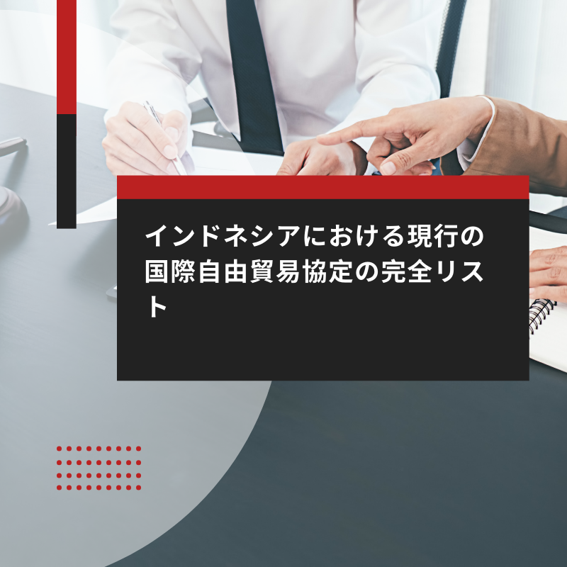 Home Blog インドネシアにおける現行の国際自由貿易協定の完全リスト Business Setup | Indonesia | Investor KITAS インドネシアにおける現行の国際自由貿易協定の完全リスト InCorp Editorial Team 24 December 2025 1 minutes reading time Table of Contents インドネシアにおける自由貿易協定の理解 自由貿易協定がインドネシアとその貿易相手国にとって重要な理由は何か? インドネシアの自由貿易協定の包括的リスト インドネシアの自由貿易協定を活用する方法 InCorpとともにインドネシアの自由貿易協定を活用する グローバル化が経済情勢を形作り続ける中、自由貿易協定(FTA)は国々を結びつけ、競争力を高め、経済成長を促進する上で重要な役割を果たしています。インドネシアにとって、これらの協定は単なる貿易取引に留まりません。それらは、世界経済へのさらなる統合への道筋を示しています。 インドネシアはFTAを活用して貿易障壁を減らし、市場アクセスを改善し、外国投資を誘致しています。これらの協定は、企業が国際的に拡大するのを支援するとともに、国内産業がイノベーションや競争を通じて発展するのを促進します。 インドネシアにおける自由貿易協定の理解 自由貿易協定とは、インドネシアとその貿易相手国との間で経済的協力を強化するため、物品貿易、サービス、投資の3つの主要分野で貿易障壁を削減する正式な取り決めです。 このFTAは、インドネシアの国際貿易の存在感を高めるとともに、経済成長のチャンスを創出することを目的としています。以下は、インドネシアに特化したFTAの機能についての概要です。 物品貿易 自由貿易協定は関税やその他の貿易制限を撤廃または引き下げ、インドネシア製品を相手国でより手ごろな価格にします。物品は原産地規則(Rules of Origin, ROO)を満たし、実際にインドネシア産であることを証明する必要があります。 サービス貿易 これらの協定により、金融や物流などのインドネシアのサービス提供者が国際市場でより活動しやすくなる一方で、外国の専門知識を国内に呼び込みます。 投資 自由貿易協定は、投資家の権利を保護し、安定したビジネス環境を確立することで、外国投資を奨励します。これにより、インドネシアの経済成長やインフラ開発が促進されます。 自由貿易協定がインドネシアとその貿易相手国にとって重要な理由は何か? 自由貿易協定は、インドネシアとその貿易相手国にとって相互の経済成長を促し、貿易関係を強化することで、双方に利益をもたらす状況を生み出します。主な利点には以下が含まれます。 手頃な価格の商品の利用 インドネシアを含むすべての参加国の消費者は、世界中から供給されるコスト効率の高い高品質な商品を利用する恩恵を受けています。これにより購買力が向上し、生活水準が改善されます。 生産における相互利益 FTA(自由貿易協定)に参加する国々は、それぞれの強みを活かすことで生産性を最大化します。例えばインドネシアは、パーム油、繊維、海産物などを輸出し、一方で海外でより効率的に生産される機械や技術を輸入しています。 経済機会の拡大 FTAは双方の貿易フローと投資を促進し、雇用創出、イノベーションの育成、そして経済全体の成長を推進します。この相互の交流は産業を強化し、企業が拡大するための新たな道を開きます。 共有されるグローバルな効率性 特化と労働の分業を通じて、パートナー国は協力してより低コストで多くの商品を生産します。これにより商品の世界的な供給が増加し、持続可能な発展を支援します。 インドネシアの自由貿易協定の包括的リスト インドネシアは独立した国家として、また地域組織の重要なメンバーとして積極的に自由貿易協定に関与しています。以下は、2025年におけるインドネシアの貿易の枠組みを形作る主要なFTAの概要です。 地域的包括的経済連携協定(RCEP) 世界最大のFTAであり、15か国をカバーし、世界GDPの30%を占めます。RCEPは92%の関税を撤廃し、貿易規制を簡素化し、2040年までにインドネシアの貿易黒字を倍増させると予測されています。 ASEAN-中国自由貿易協定(ACFTA) このパートナーシップは年間7,310億ドル以上の貿易を促進します。ACFTAは7,000以上の商品に対する関税を削減し、中国がASEAN最大の投資国としての役割を強化しています。 インドネシア・韓国包括的経済連携協定(IK-CEPA) この協定は、インドネシアによる韓国からの輸入に対する関税の95%、韓国がインドネシアからの輸出に対する関税の92%を撤廃し、農業、漁業、工業製品での貿易を強化しています。 豪州-インドネシア包括的経済連携協定(IA-CEPA) 関税削減を超えて、IA-CEPAは鉱業、医療、金融分野での国境を越えた就業機会を促進し、農業貿易を強化します。 インドネシア-欧州自由貿易連合包括的経済連携協定(IECEPA) EFTA諸国(アイスランド、リヒテンシュタイン、ノルウェー、スイス)との貿易を強化し、ほとんどの商品に対する関税を撤廃して、市場アクセスを向上させ、インドネシア輸出業者を