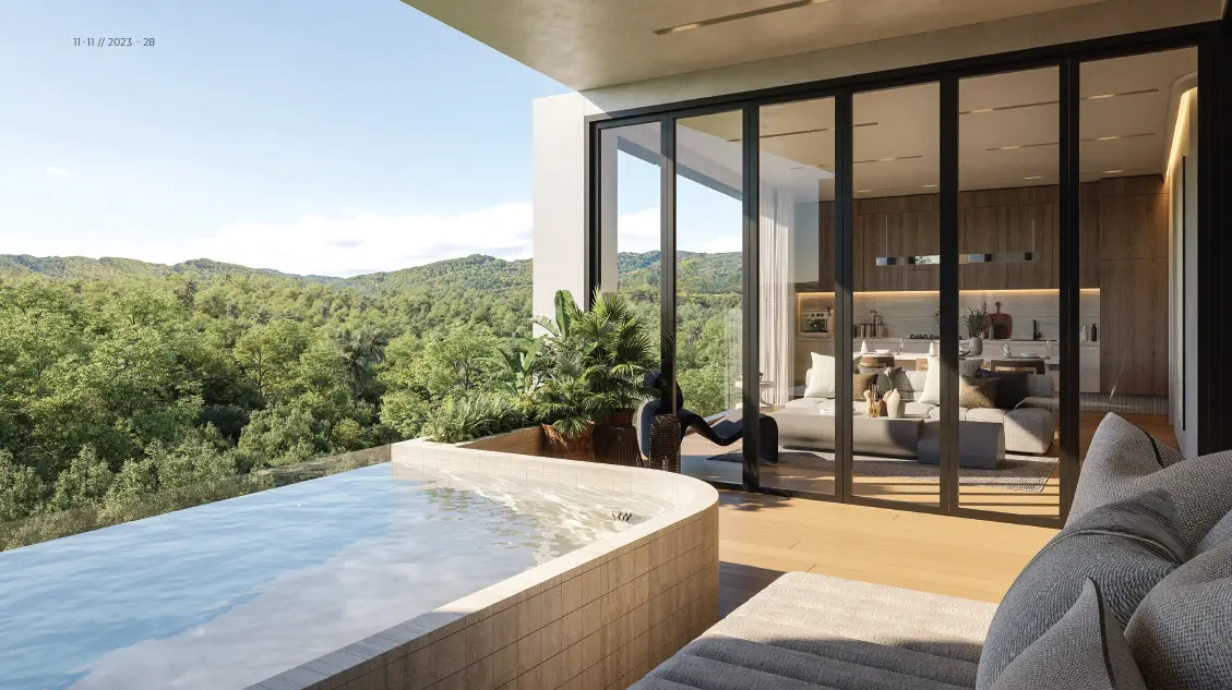 Spanning 70 square meters, this fully furnished residence redefines luxury living with a private pool and outdoor patio, offering an oasis of tranquility. The condo is designed for both relaxation and wellness, featuring an exercise studio with infrared Pilates, a yoga chalet, and additional amenities like plunge pools and a sauna. Residents enjoy exclusive access to a poolside cafe, restaurant, and an elite bar membership, creating an unparalleled lifestyle experience in the heart of Uluwatu.
