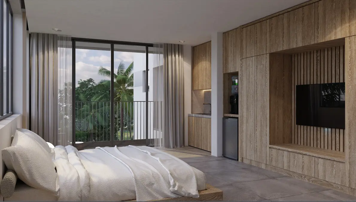 Seize the opportunity to experience the essence of modern coastal living with this stunning 1-bedroom apartment available on a 30-year leasehold in Canggu. Immerse yourself in a contemporary industrial design, complemented by the allure of a generously sized pool, providing the perfect escape for relaxation.