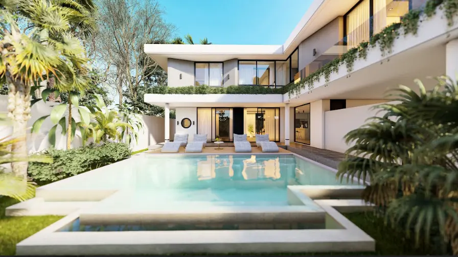 Immerse yourself in Bali’s beauty! Our expansive 4-bedroom villas in North Canggu, designed by a renowned German architect, seamlessly blend modern Mediterranean style with Balinese warmth. Unwind in your private sanctuary, featuring a sunken living room, a spacious kitchen-dining area perfect for entertaining, and a refreshing private pool with innovative ION-technology for a healthy, chlorine-free swim. fully furnished kitchen equipment with LG refrigerator and microwave, you also have the laundry room with LG laundry machine. Included spacious parking space with 1 car and 2 scooters. The investment for 25 years Leasehold starts at $575,000 and will increase with construction progress and depending on the plot size (land size between: 352-370sqm)
