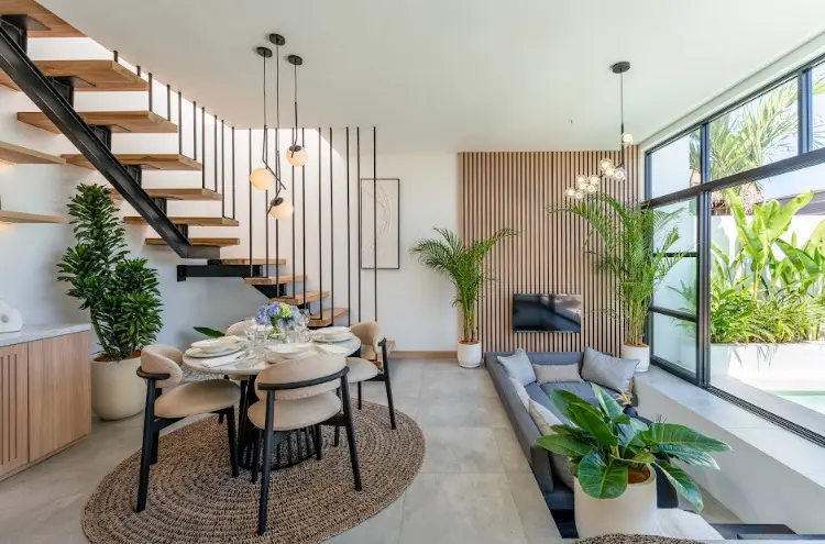 Situated on a 25-year leasehold, this brand-new property boasts an enviable position with panoramic rice field views that create a picturesque backdrop to your everyday life. From the moment you enter, you’ll be captivated by the seamless fusion of modern design and traditional Balinese aesthetics. This two-story villa, a masterpiece of architectural finesse, features an open-space layout that maximizes natural light and enhances the feeling of spaciousness.
